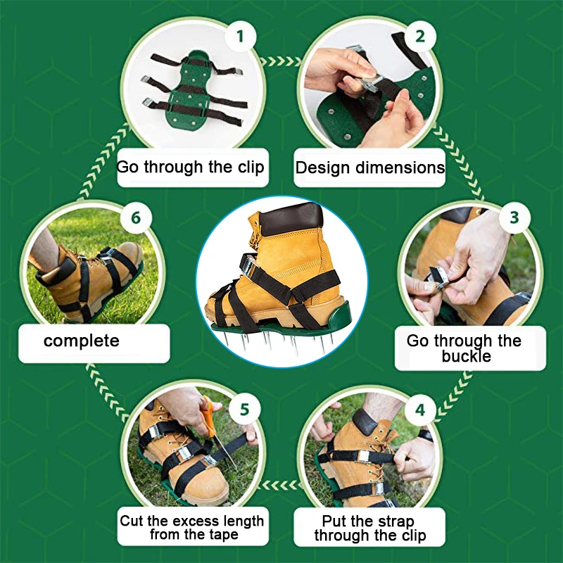1. Мы добавили дополнительный ремешок на каблуке для новой свободной обуви (эффект лучше, чем эластичный ремешок), которые могут фиксировать обувь на пятке, чтобы обеспечить устойчивость каблука на месте.2. Изготовлены из прочного основания, обеспечивают хорошую поддержку пятки, прочная Полипропиленовая доска с устойчивыми к коррозии металлическими гвоздями светильник.3. Товар содержит: 2 доски для обуви, 4 шнурка для обуви, 2 треугольных ремня, 1 упаковку винтов, Установка очень проста.4. Наденьте грунтовую обувь, чтобы ваш газон или сад процветали. Перфорируя небольшие отверстия, ваша надувная обувь обогащает почву питательными веществами и уменьшает вред траве. Кроме того, нескользящий коврик предотвращает скольжение газона во время намокания.5. Он используется для ослабления и вентиляции дерна, может легко проникать в почву и низовые корни, что упрощает садовую жизнь. Его также можно использовать в строительной промышленности.