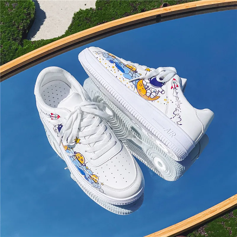 Женские кроссовки ручной работы, удобные белые повседневные уличные кроссовки с рисунком аниме, универсальная модная обувь, быстрая доставка