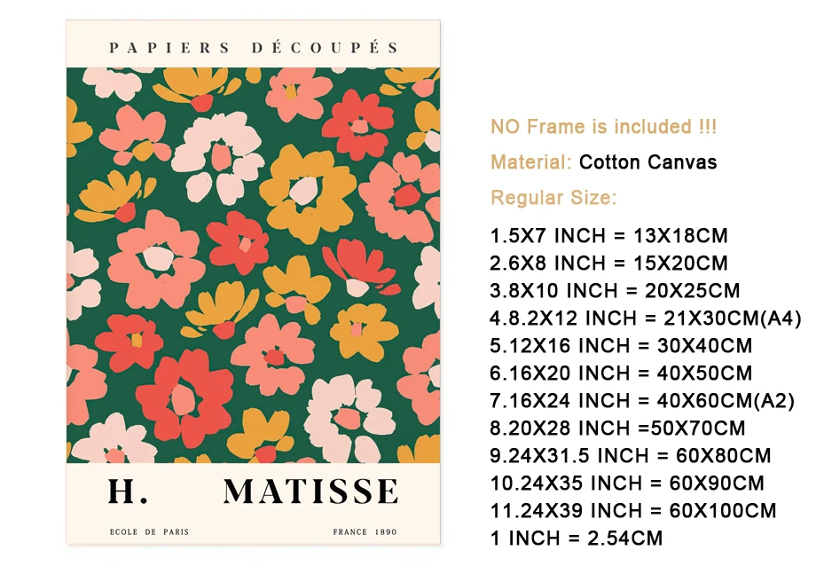 Абстрактная Настенная картина Matisse с изображением цветов, Листье...