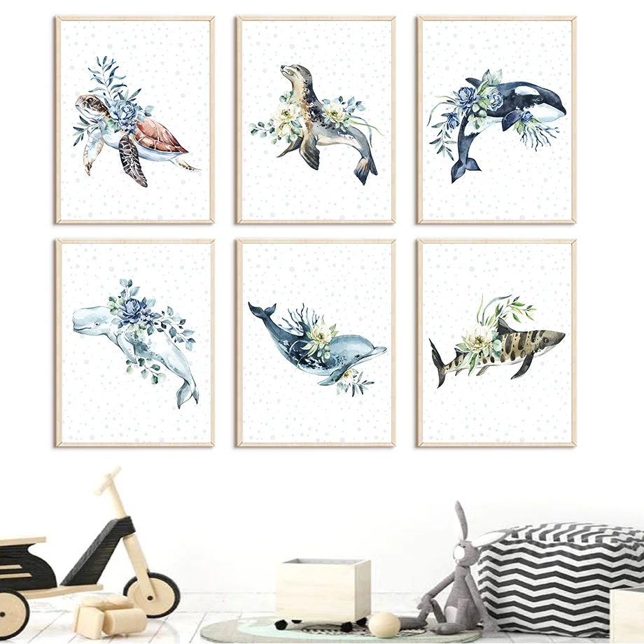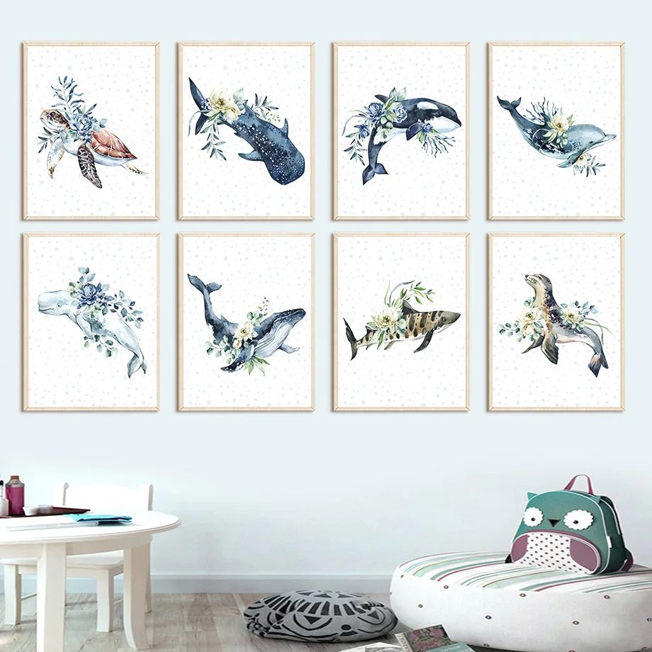 Кит, дельфин, черепаха, рыба, морская жизнь, Художественная Картина на холсте, Скандинавское образование, плакаты и принты, настенные картины, декор для детской комнатыМатериал: экологически чистый хлопокХарактеристика: солнцезащитный, водонепроницаемый, никогда не выцветает