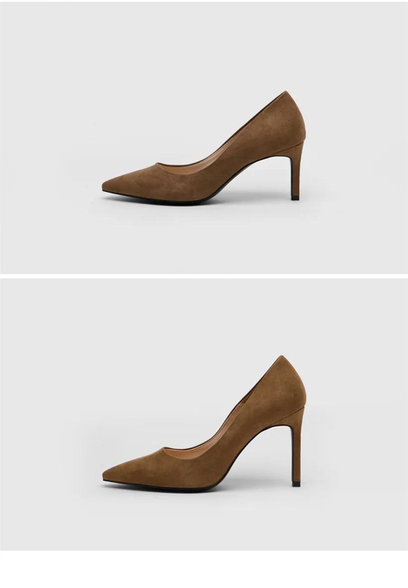 Женские замшевые туфли-лодочки, офисные туфли на высоком каблуке, с острым носком, для вечеринок, 2021