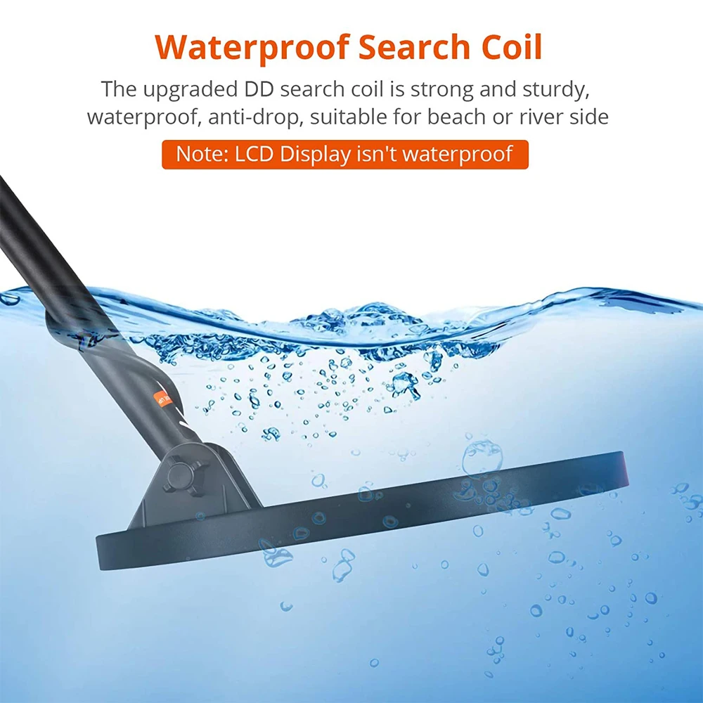 Регулируемый металлоискатель с водонепроницаемой катушкой 8,5 дюйма, 7 целевых категорий, индикацией глубины, функцией PT ЖК-дисплея