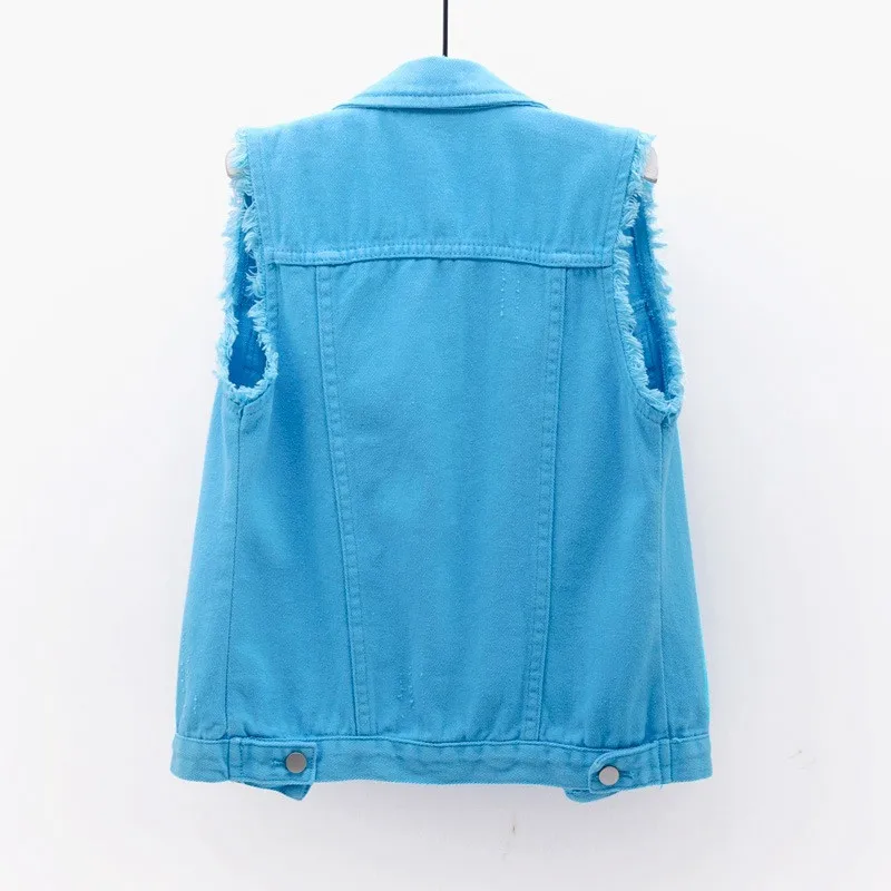 Осенняя женская джинсовая жилетка, безрукавка, студенческие повседневные топы, джинсовые куртки, красные, розовые, фиолетовые, желтые, синие, белые