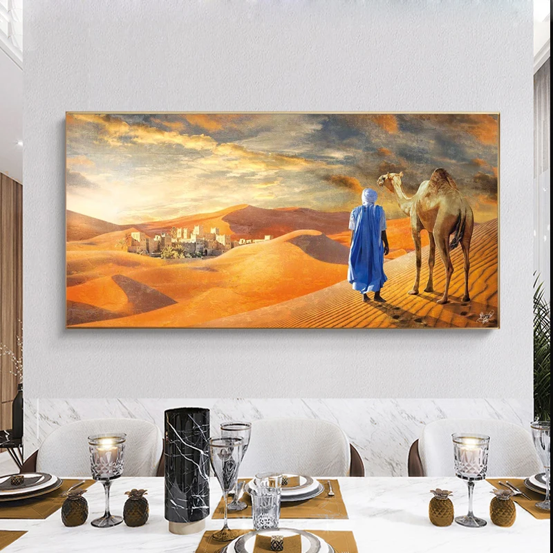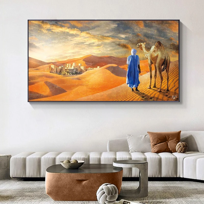 Пейзаж пустыни, холст, картина, Восточная туарег, путешественник, Постер и принты, настенные картины для гостиной, домашний декор