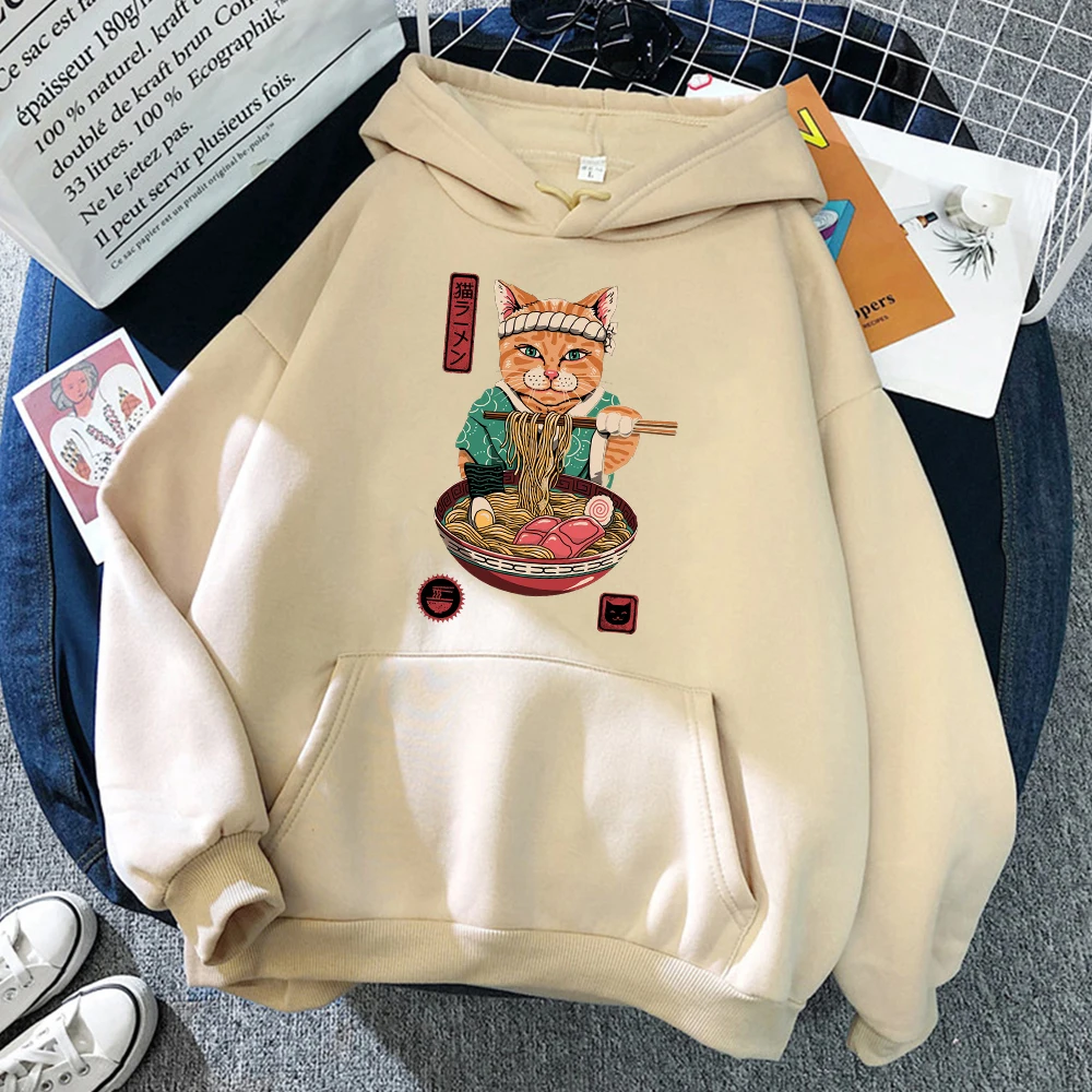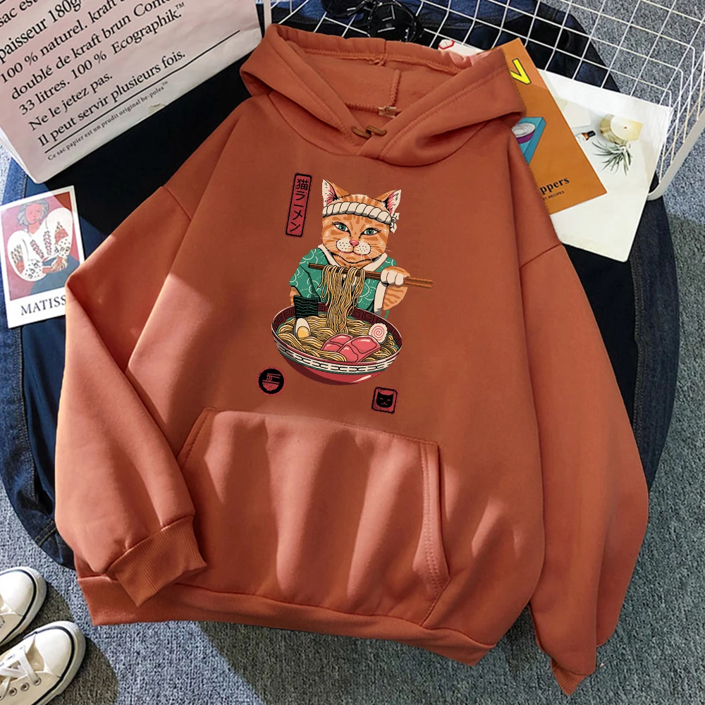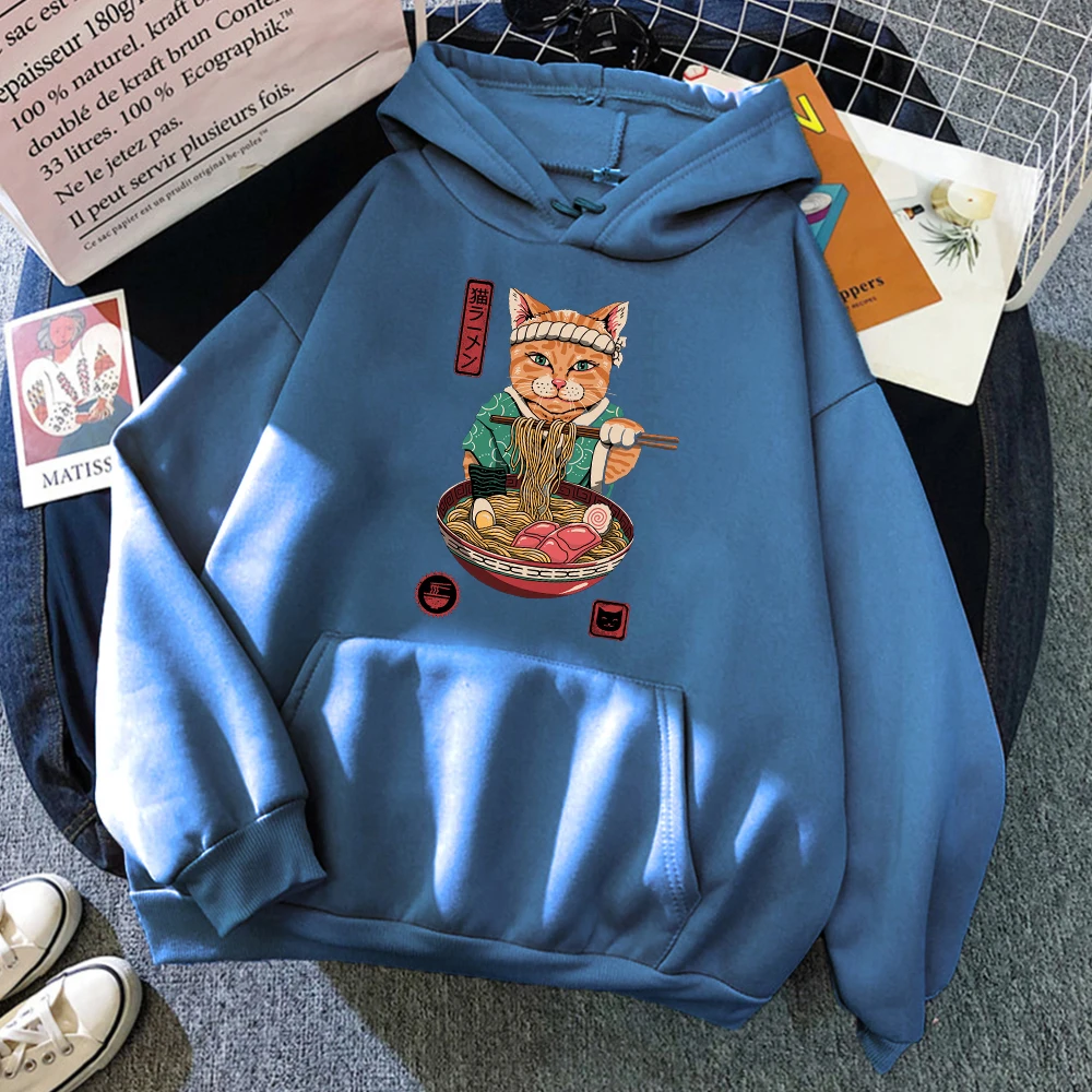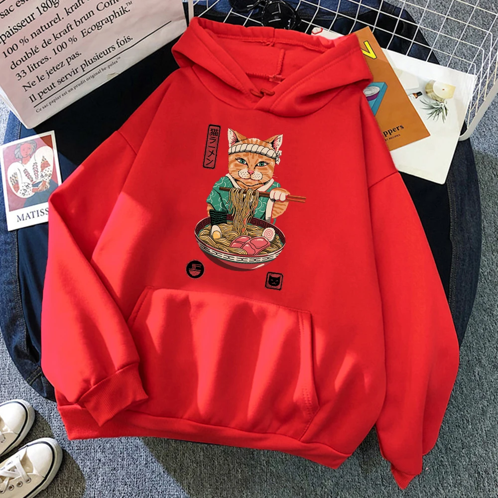 Японское кимоно, свитшоты с рисунком кошки и лапши, уличная мода, мужские толстовки, свободные спортивные костюмы оверсайз