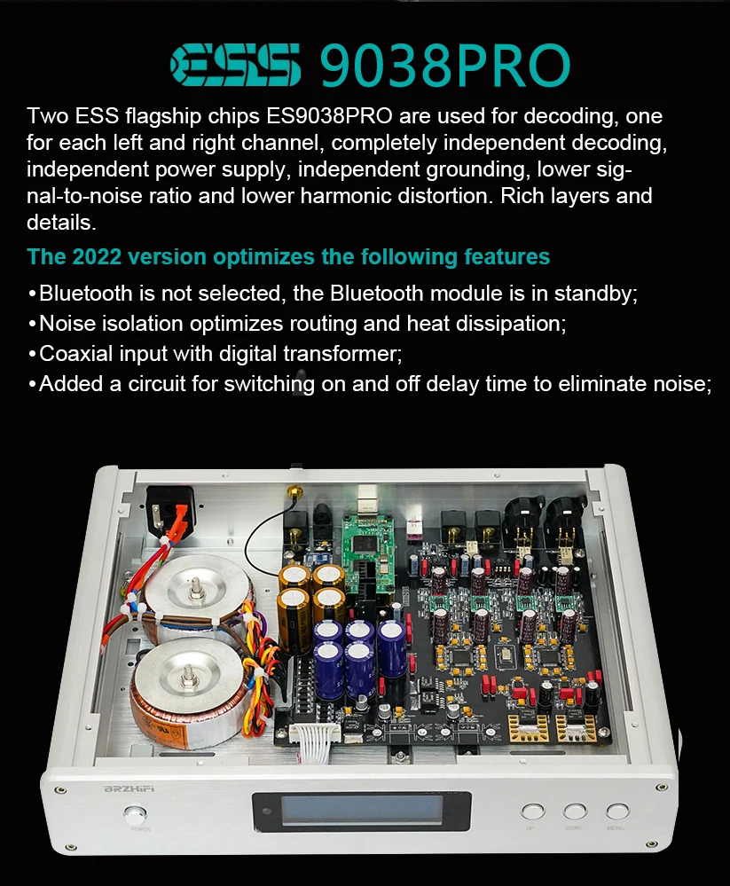 BRZHIFI, внешнее освещение, максимальный двухъядерный ES9038PRO DAC декодер, USB интерфейс CSR8675, Bluetooth-совместимый пульт дистанционного управления 5,0