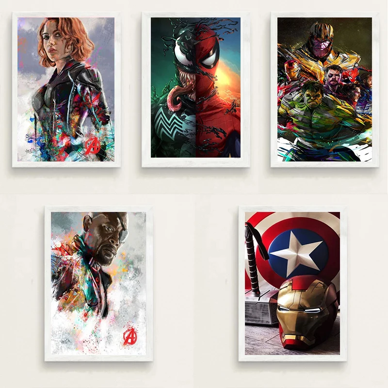 Картина на холсте с супергероями Marvel, Капитан Америка, Халк, Бэтмен, Человек-паук, декоративная живопись постер, гостиная, спальня, домашний декор icon star icon star icon star icon star icon star