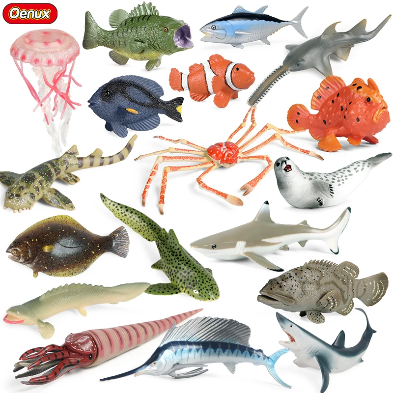 Характеристика:Oenux морские Медузы Акула печать Краб клоун Тунец Морская жизнь животные Модель Фигурки ПВХ миниатюрная детская игрушка для душа