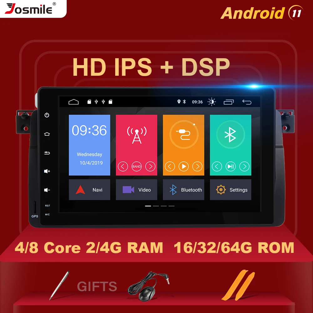 Автомобильная Мультимедийная система Josmile, мультимедийный стерео-проигрыватель на Android 11, с GPS-Навигатором, для BMW E46, M3, Rover 75, Coupe, 318320325330335, Типоразмер 1 Din
