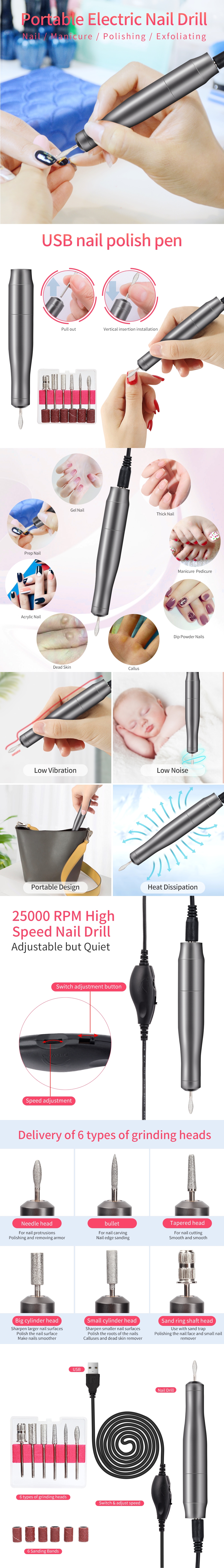 Портативная электрическая дрель для ногтей 25000 обмин с 6 сверлами...