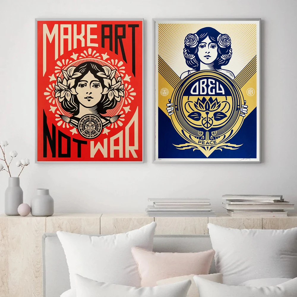 Картина на холсте и принты Make Art Not War Obey, винтажные настенные постеры Shepard Fairey для гостиной, спальни, украшение для дома
