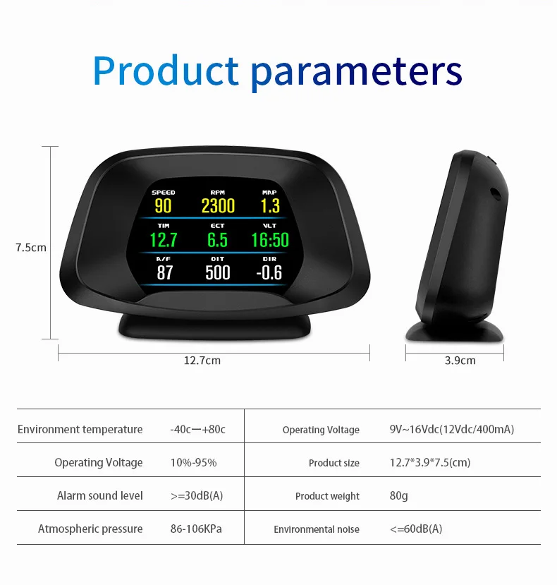 Особенности: 100% совместимость OBD + GPS Двойная система HD дисплей, нет двойного изображения, четкий эффект в дневное время Металлическая нанотехнология на лицевой стороне для удаления нежелательных отражений для более четкого отображения OBD + GPS 2 в 1 двойная рабочая система, которая может работать на всех транспортных средствах. Посылка включает в себя: