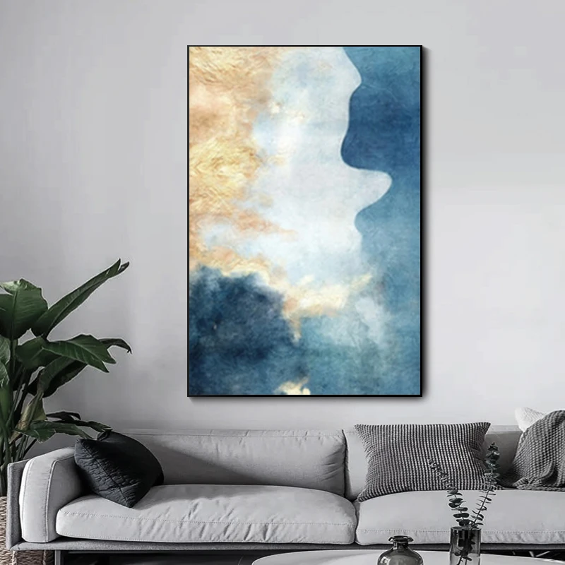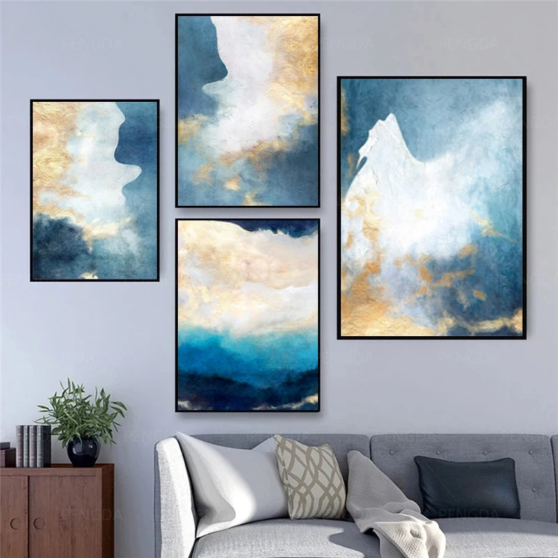 Абстрактная Золотая синяя Картина на холсте скандинавский Пейзаж Настенный постер для гостиной спальни украшение для дома без рамки