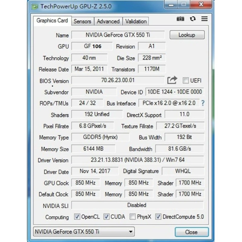 Графическая карта NVIDIA GTX 550 Ti для компьютера, 6 ГБ, GDDR5, 19...