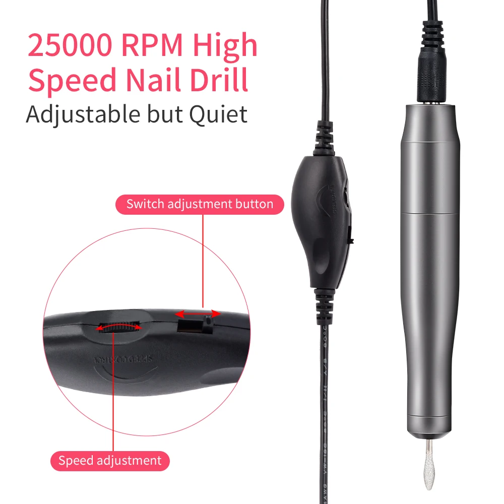 Портативная электрическая дрель для ногтей 25000 обмин с 6 сверлами для ногтей и 6 шлифовальными лентами для электрических пилок для педикюра