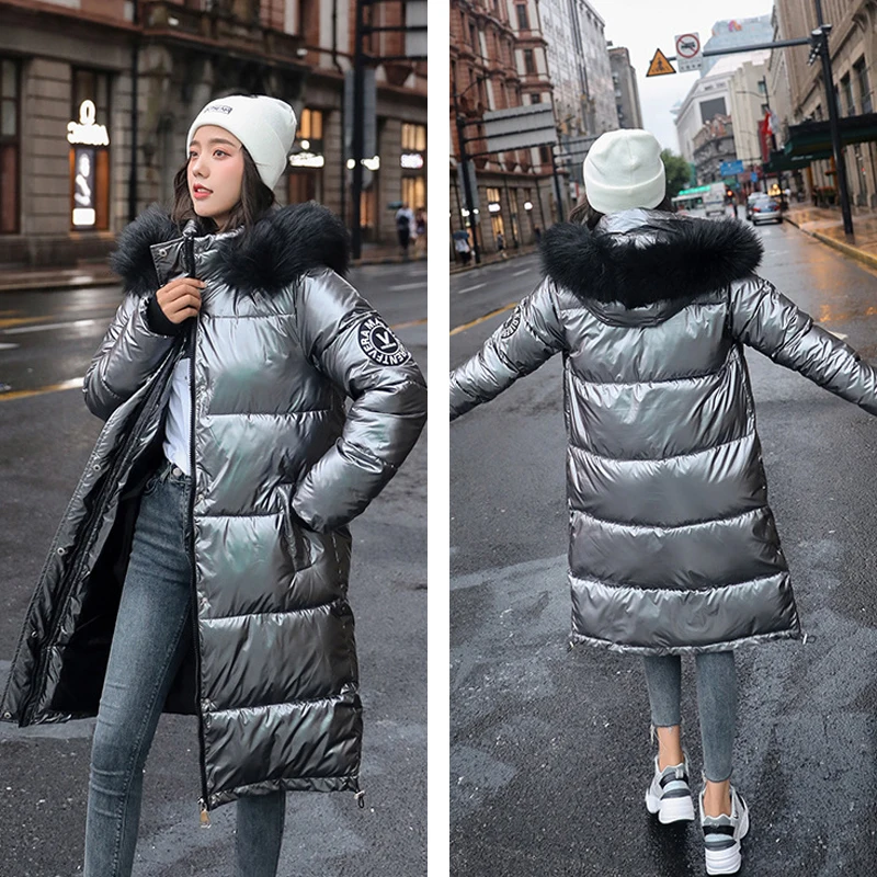 Женские длинные синие пуховики оверсайз, толстые повседневные пуховики с меховой эполеткой, зимние женские пуховики 2021, однотонные пуховики с капюшоном для женщин