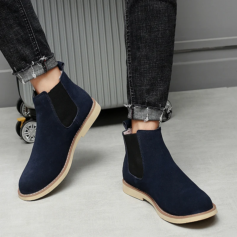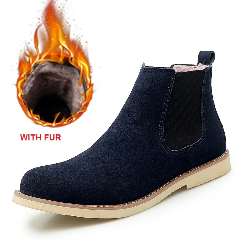Мужские ботинки челси 2021, зимние меховые теплые Синие ботильоны, слипоны, Высококачественная натуральная кожа, мужские повседневные ботинки, мужские ботинки