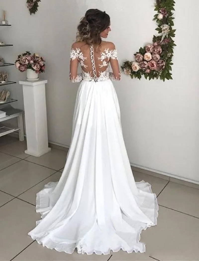 Женское свадебное платье с длинным рукавом, шифоновое платье с разрезом, а-силуэт, с длинным рукавом, в арабском стиле, в стиле бохо, весна-лето 2021
