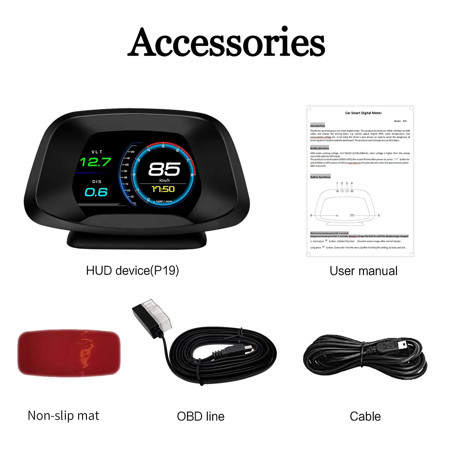 Автомобильный HUD Дисплей Цифровой Автомобильный измеритель скорости турбо датчик OBD2 GPS контроль скорости тормозной тест сканер умный гаджет