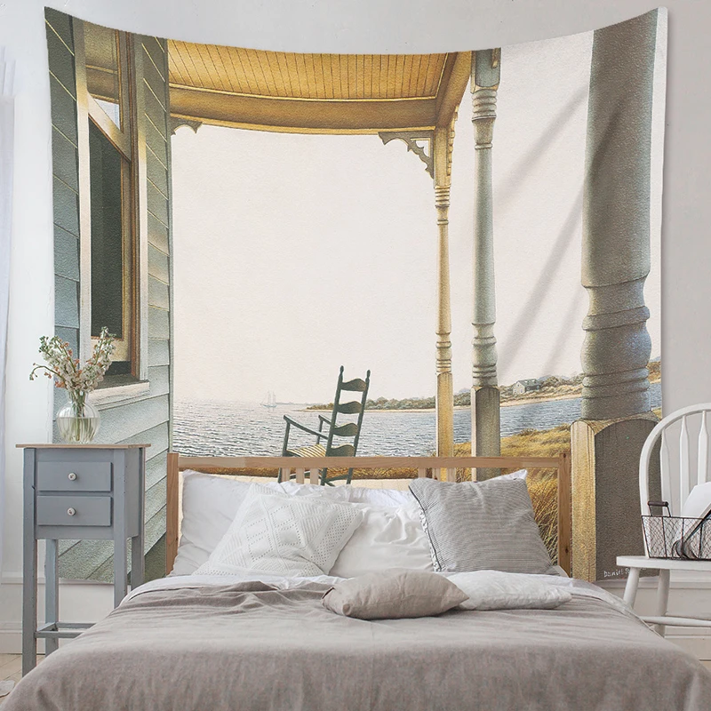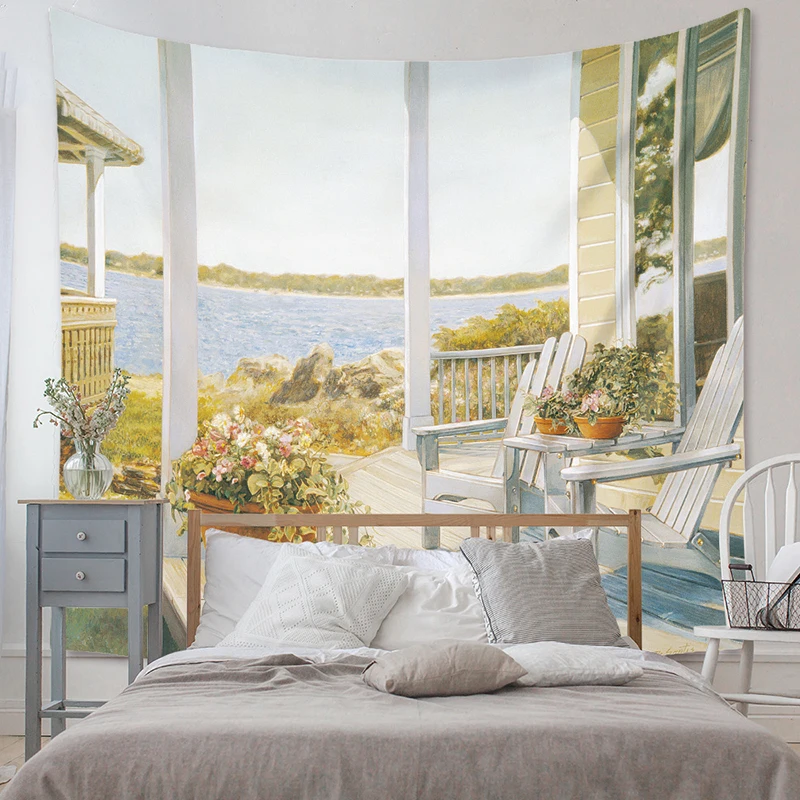 Большой ландшафт, имитация окна, гобелен, Настенный Цветок, Пляжная...