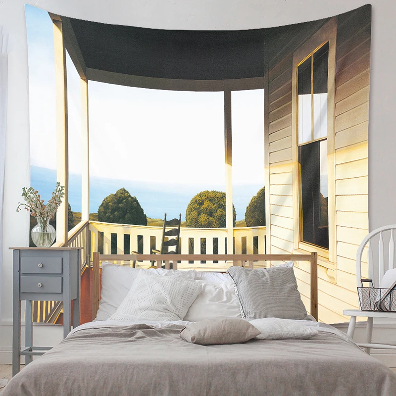 Окно океана гобелен с пейзажем хиппи Настенное подвесное покрывало ...
