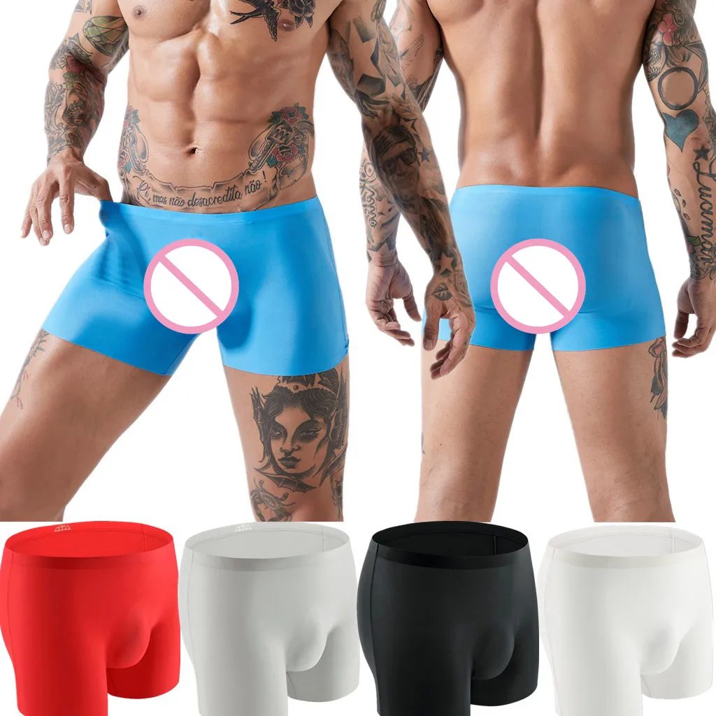 Трусы-боксеры Мужские ультратонкие, шелковые Бесшовные дышащие Трус...