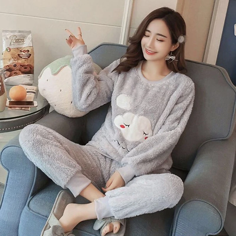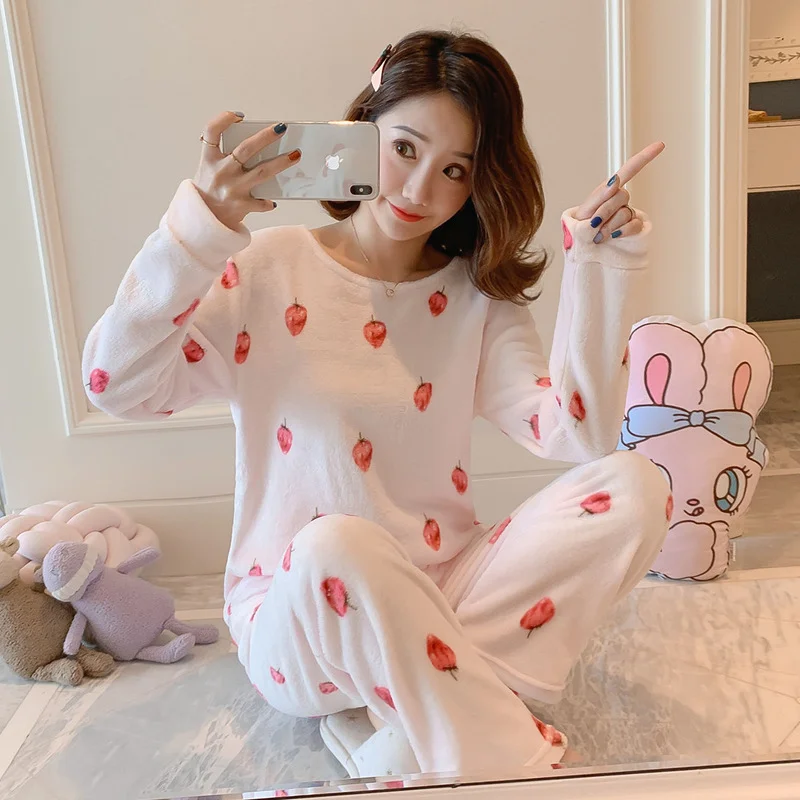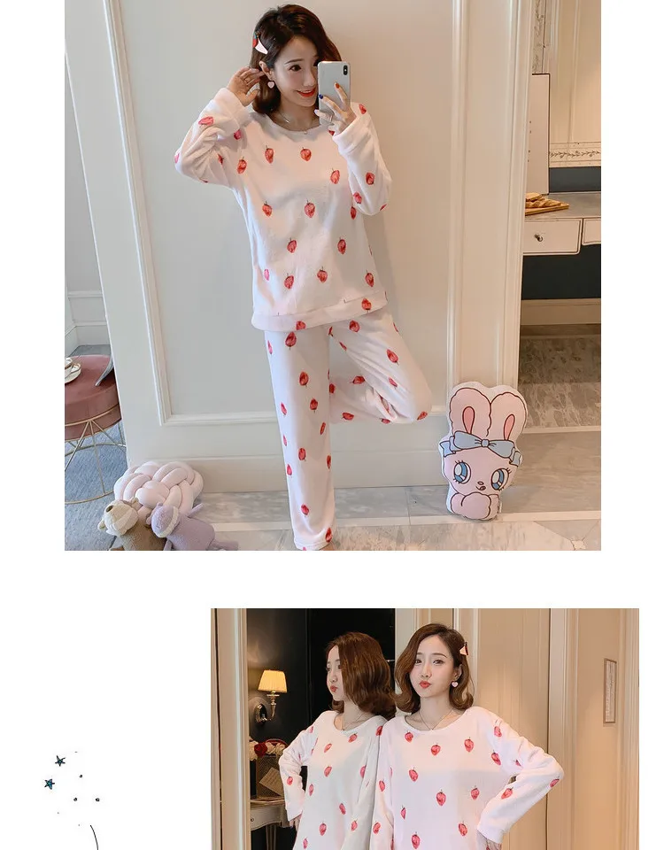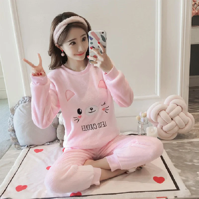 Женская фланелевая теплая Пижама 2021 осень и зима Толстая Коралловая флисовая Милая пижама с длинными рукавами с мультяшным принтом женский Пижамный костюм