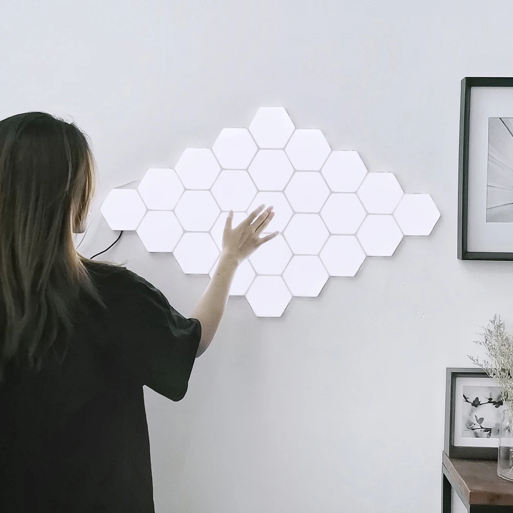 【Модульный сенсорный светильник 】это модульный сенсорный настенный светильник. Используйте шестигранную дискету, чтобы создать любую структуру в соответствии с вашими потребностями, затем включите и выключите ее, прикоснувшись к ней.