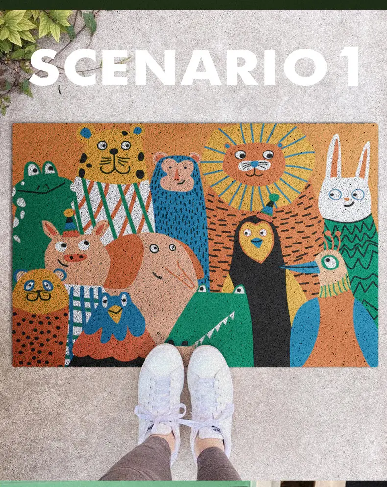 Мультяшный коврик для входной двери с животными, коврик для гостиной, нескользящий коврик из ПВХ, коврик для двери в прихожей и дома, индивидуальный коврик с шелковой петлей, коврик