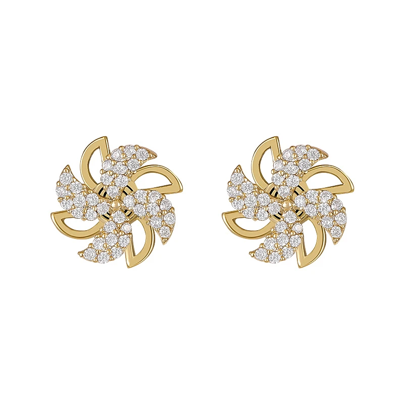 Серьги женские в виде ветряной мельницы, с золотым цирконом, Необыч...