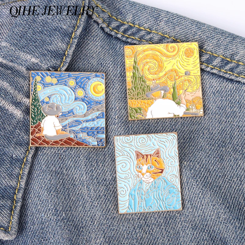 Знаменитая брошь с эмалью, картина маслом, кот Ван Гога, звездная н...