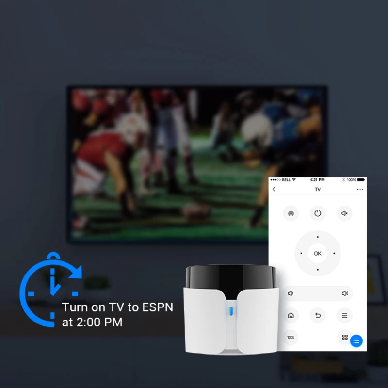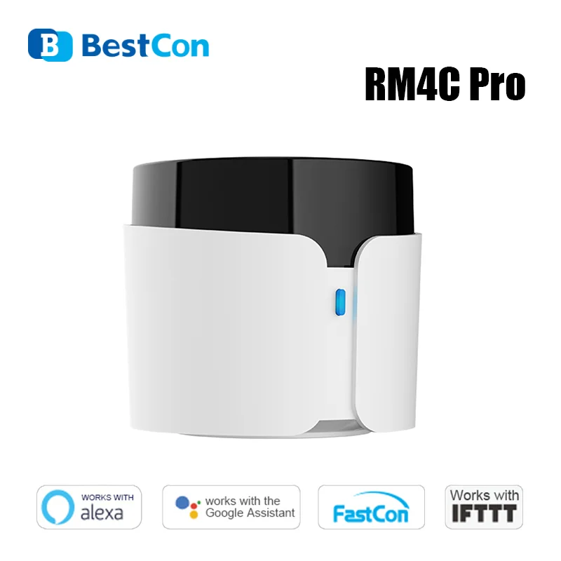 -Bestcon RM4C Pro совместим с smart home Alexa для голосового управления вашим телевизором, STB, кондиционером и вентиляторами, совместим с Google Home mini для голосового управления вашим кондиционером. Убедитесь, что устройства могут управляться удаленно от внешних сетей. В приложениях Amazon Alexa/Google Home/IFTTT Включите навыки/сервис с именем BroadLink, ссылку на учетную запись и откройте для себя устройства
