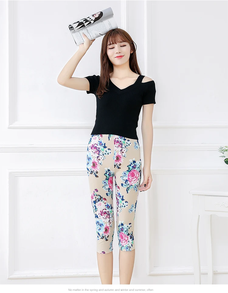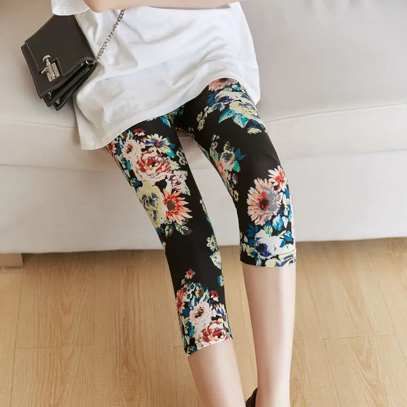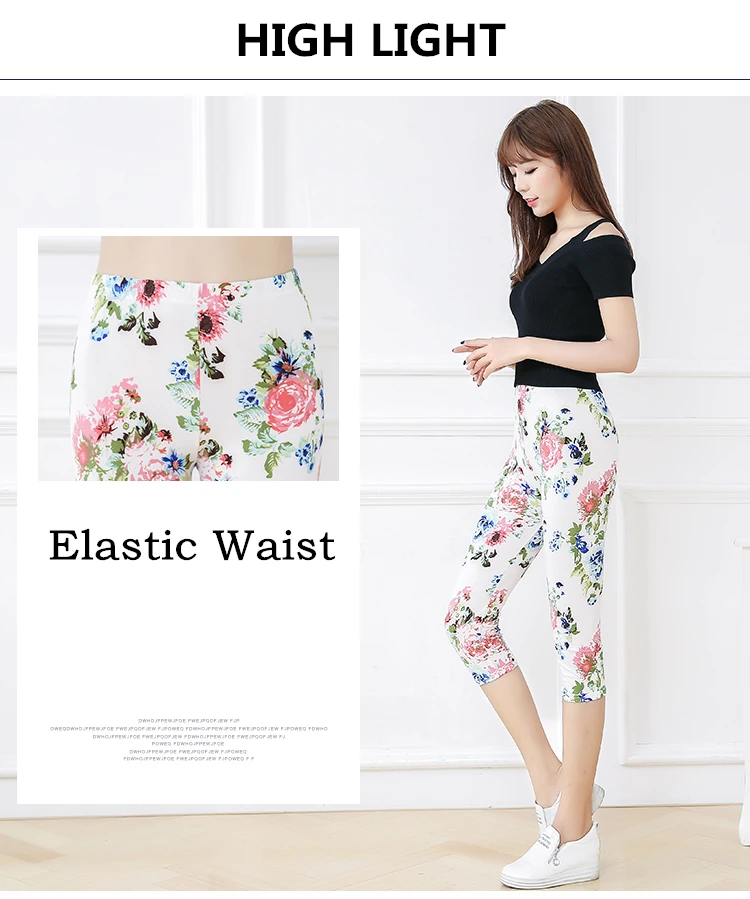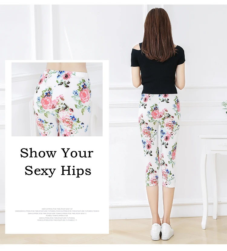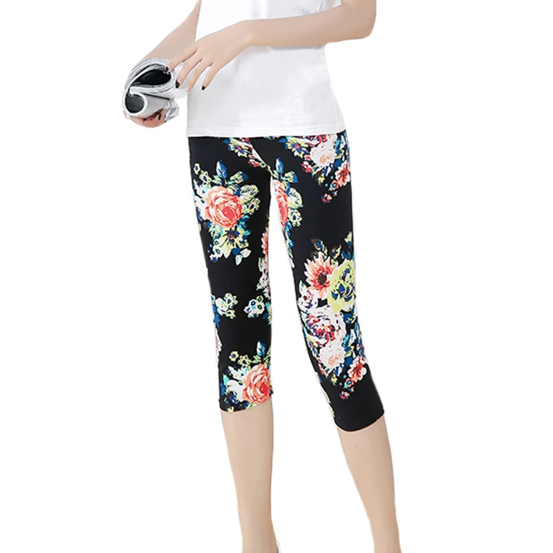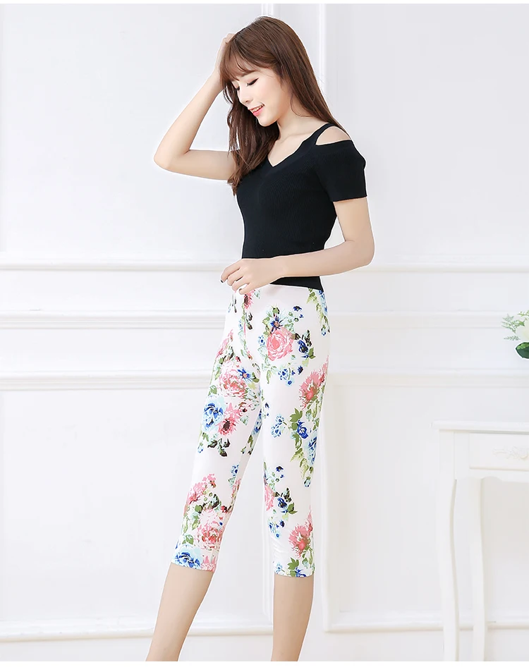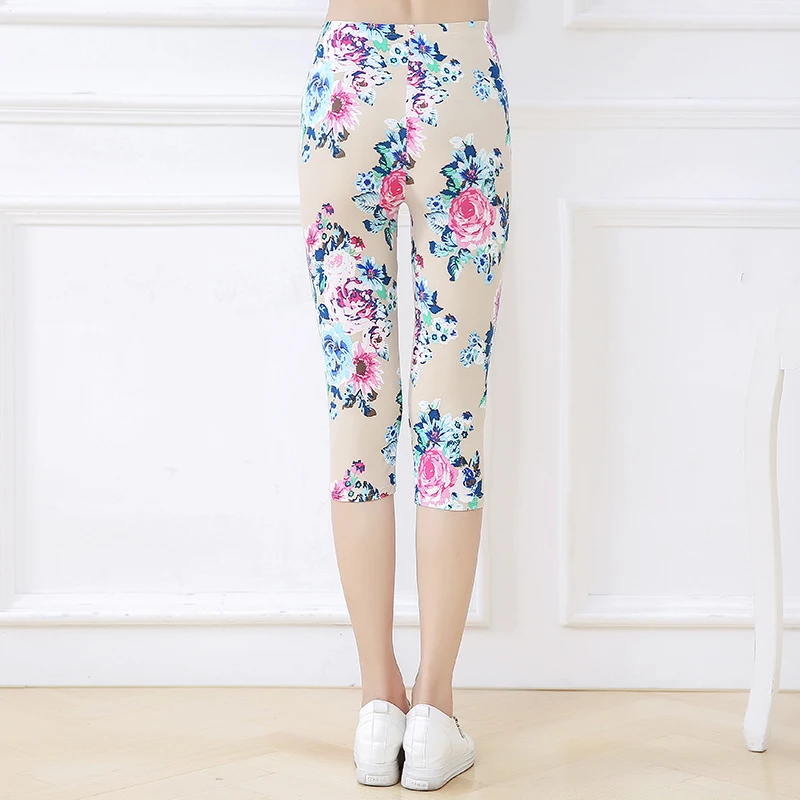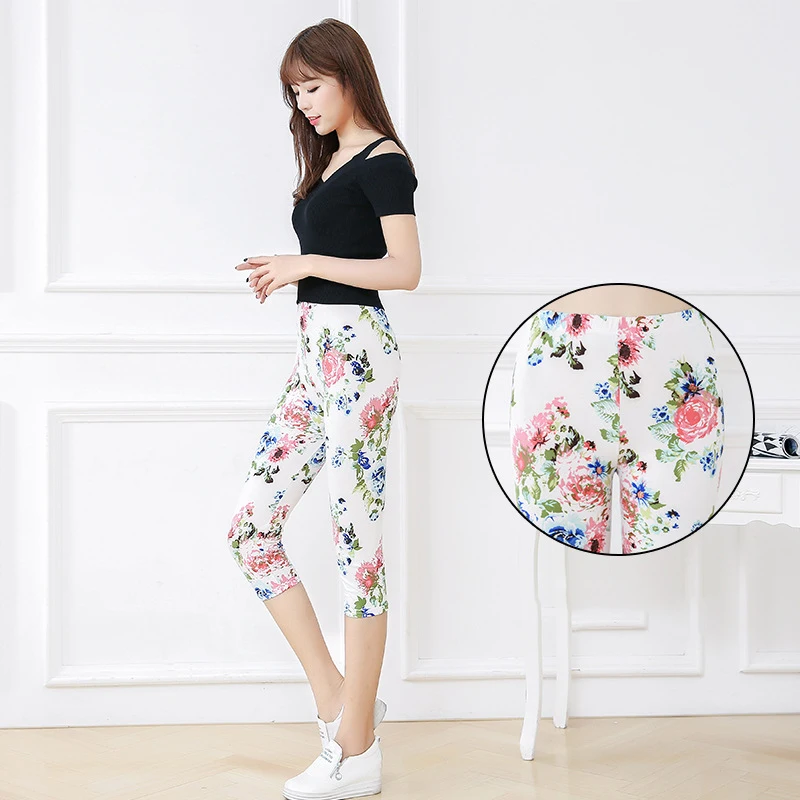 Женские летние леггинсы для фитнеса CUHAKCI с цветочным принтом, штаны для тренировок, женские штаны для активного отдыха с высокой талией, белые Капри Jegging
