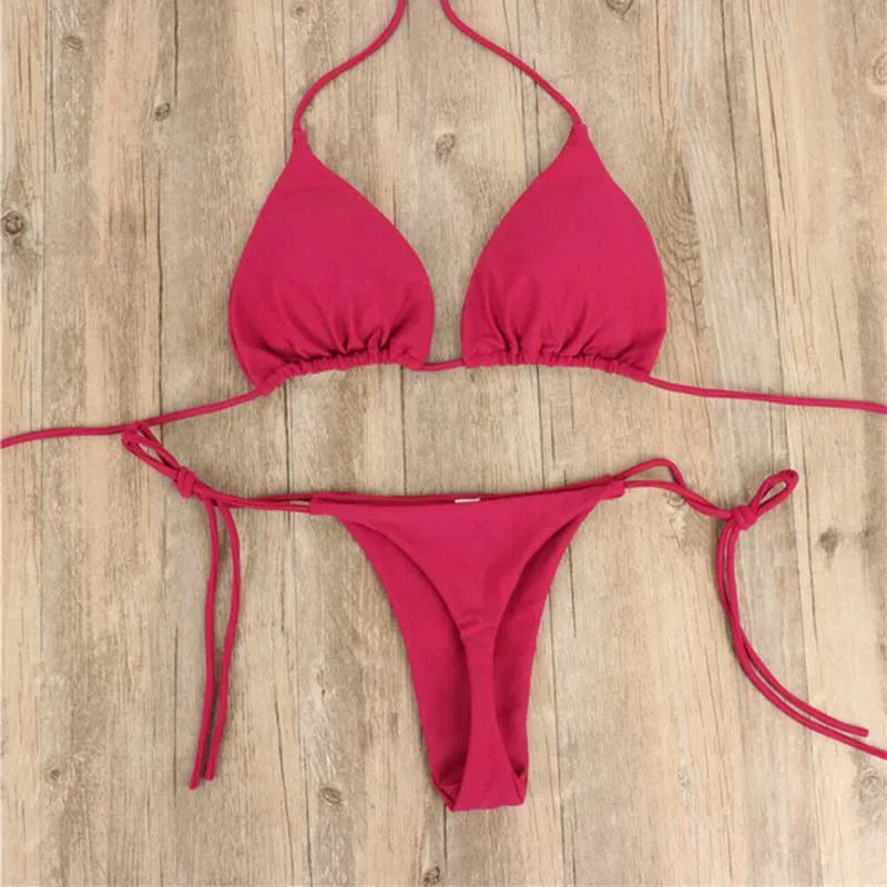 Сексуальные бразильские стринги, бикини, Женский однотонный купальн...