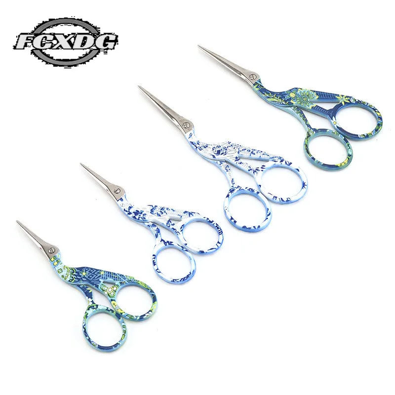 Высококачественные винтажные ножницы для рукоделия 2 размера, крановые ножницы из нержавеющей стали для шитья, цветная печать, ножницы для вышивки крестиком, пряжа
