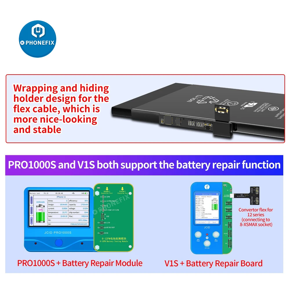 Плата для ремонта аккумуляторов JC V1S, гибкий кабель аккумулятора для iPhone 11-12 Pro Max, неподлинное предупреждение о аккумуляторе/важные сообщения о аккумуляторе 100% Fix