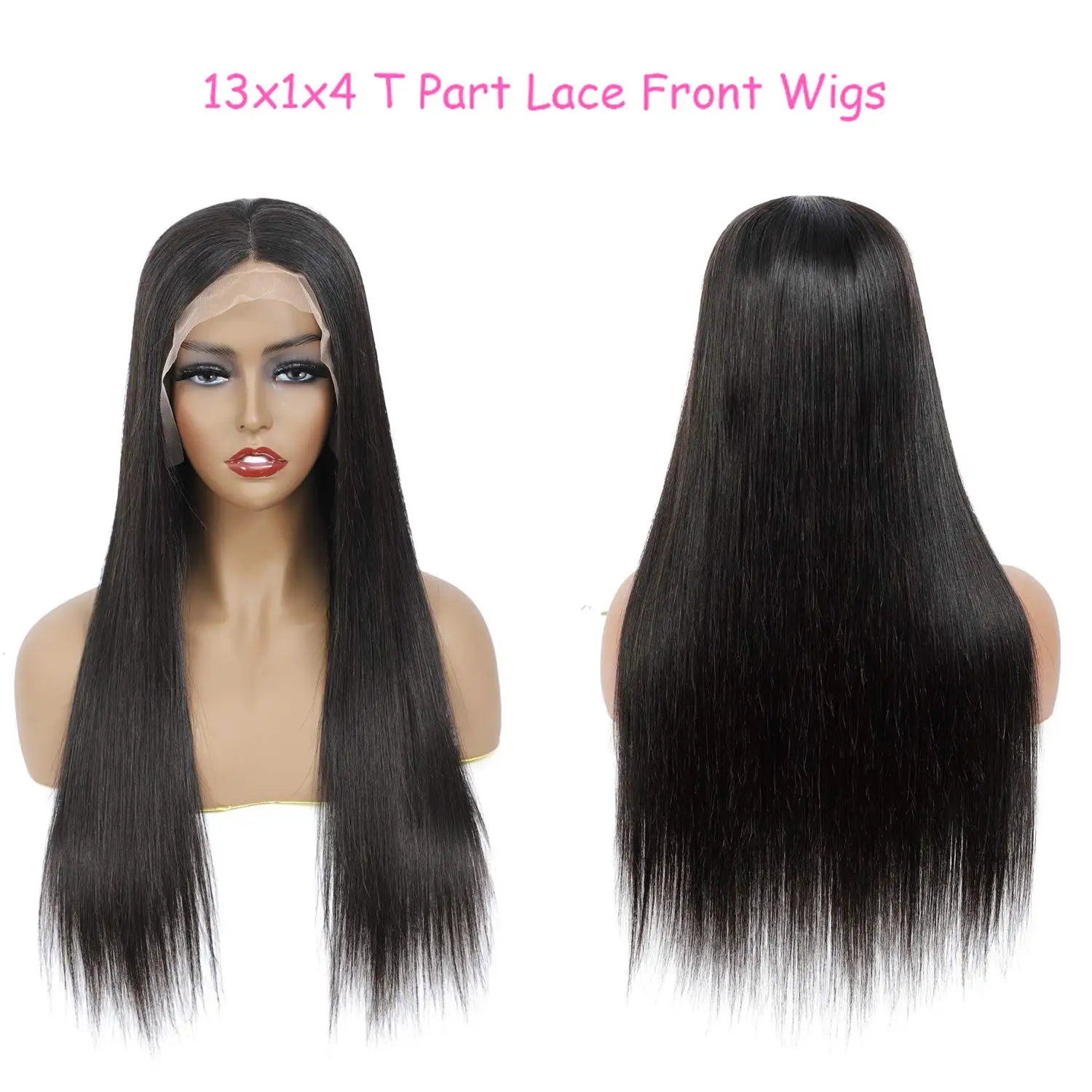 Парик Из прямых человеческих волос 13x4x1, Т-образный парик с фронт...