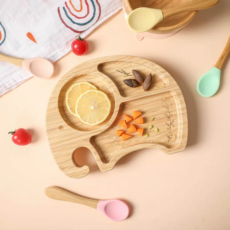 1 шт. бамбуковая деревянная посуда, искусственная картинка, животные, слон, обеденная тарелка с присоской, детские товары, подарки