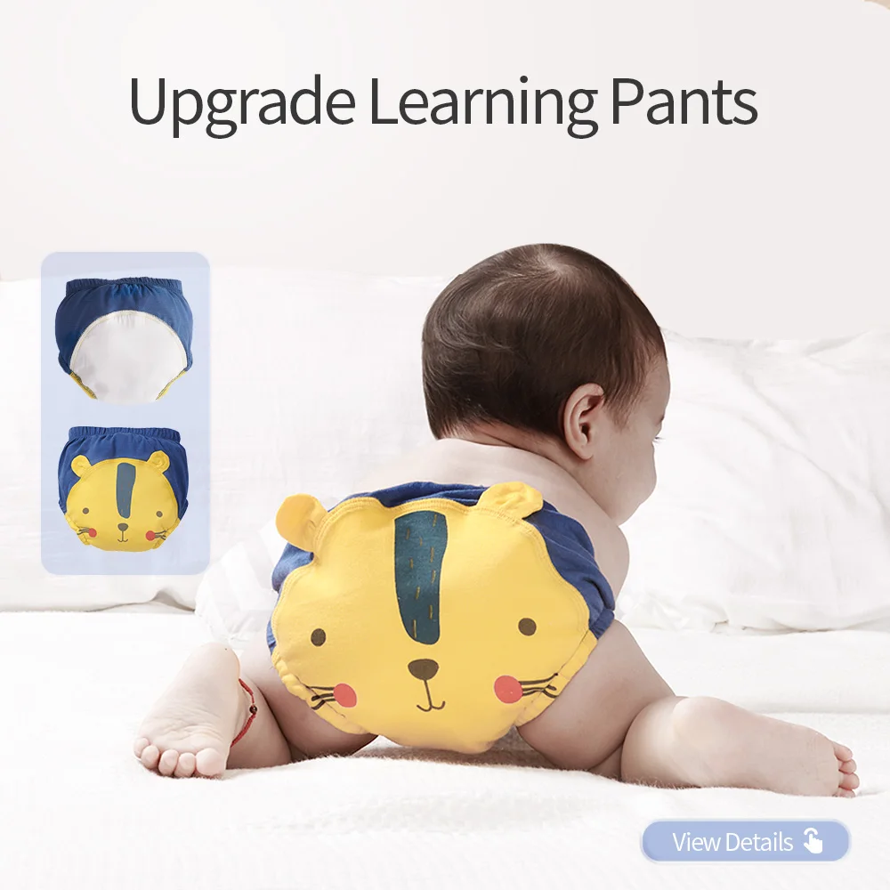 Это Обучающие трусы, изготовленные из хлопка для малышей, которые учатся ходить в горшку. Они имеют дополнительный слой материала в области промежности, чтобы поглощать мочу и какашки. Они достаточно толстые, чтобы держать небольшой случай без капель. Поглощение влаги из дышащего материала.