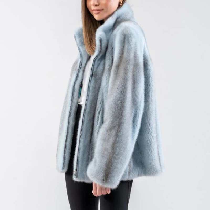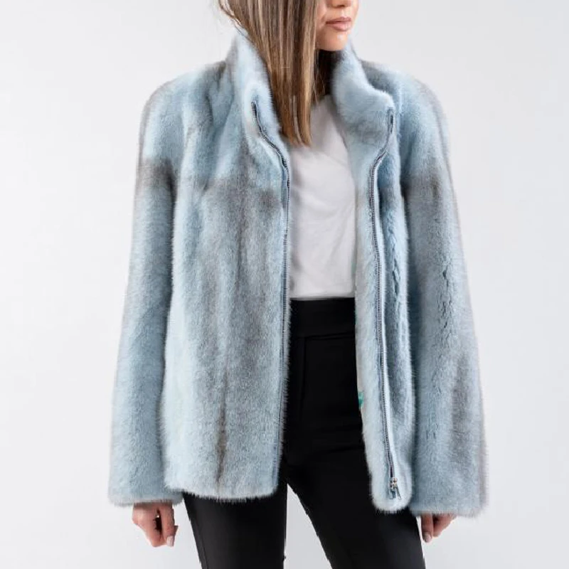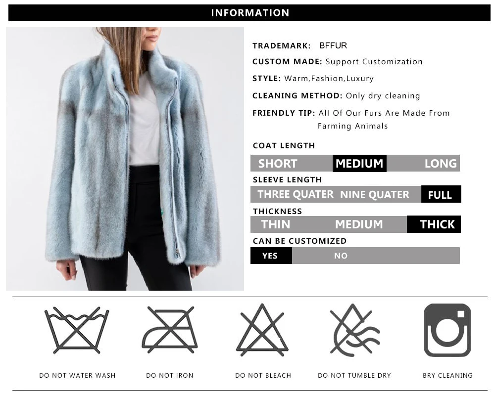 BFFUR модные синие пальто из натурального меха для женщин 2021 новые трендовые куртки из натурального меха норки роскошные меховые пальто с воротником-стойкой