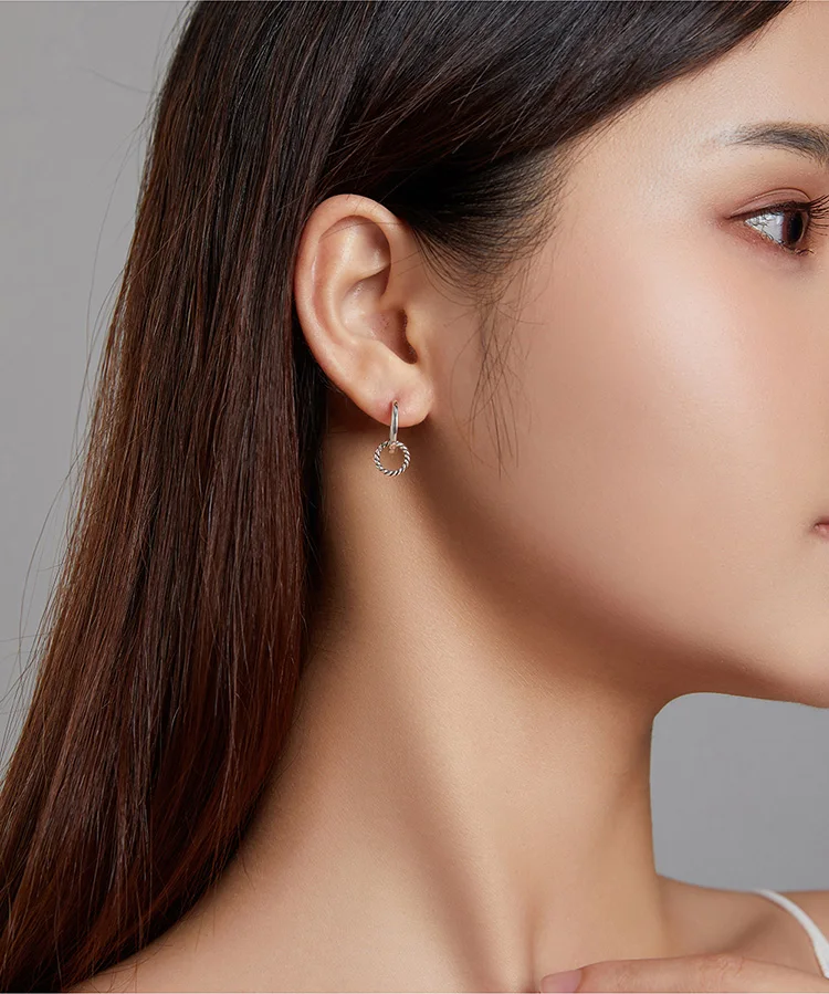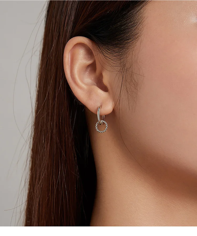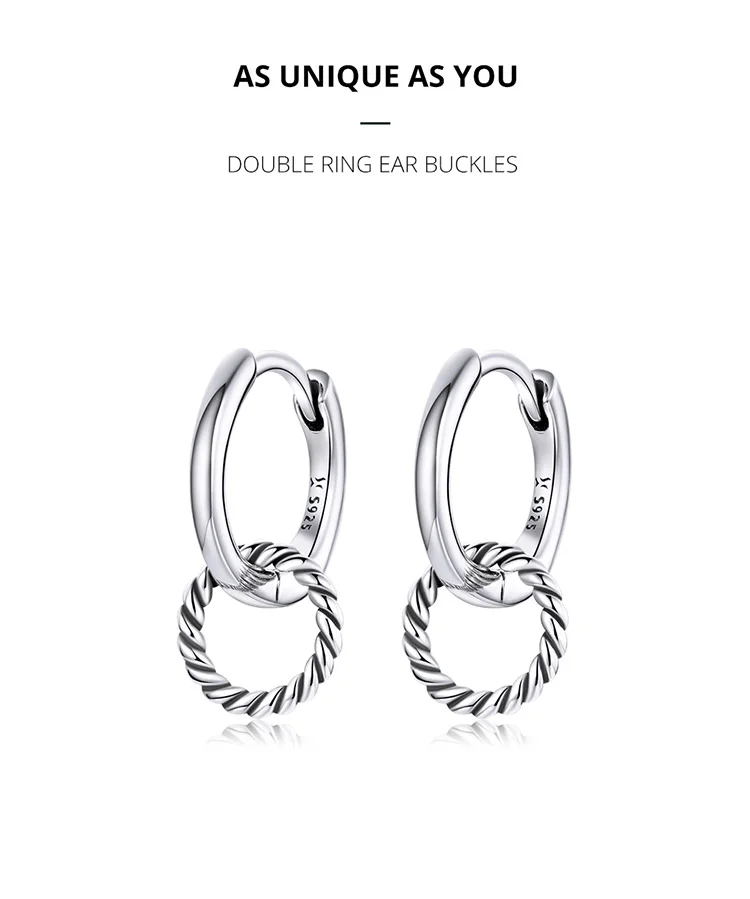 Bamoer подлинное серебро 925 пробы двойное кольцо пряжки для ушей круглые серьги для женщин серебряные ювелирные изделия SCE1199