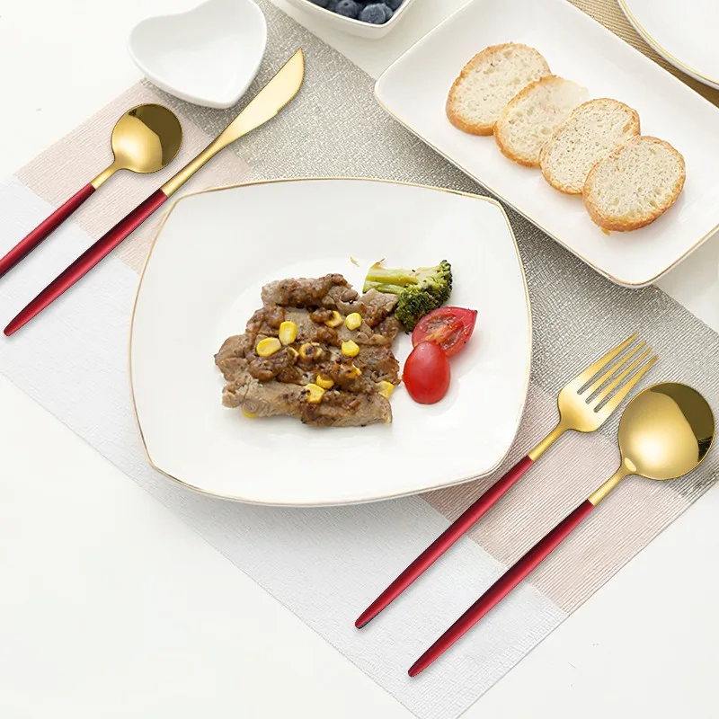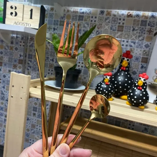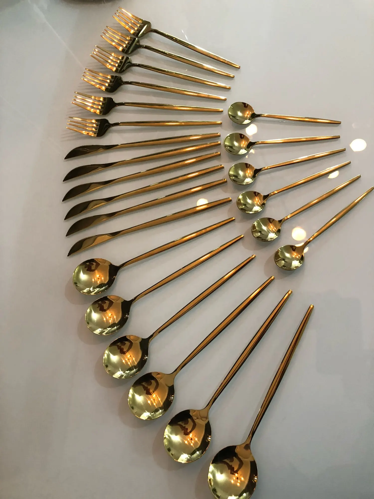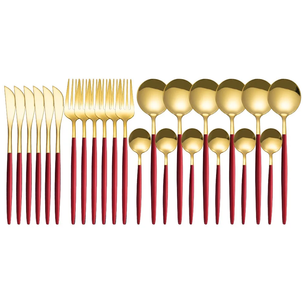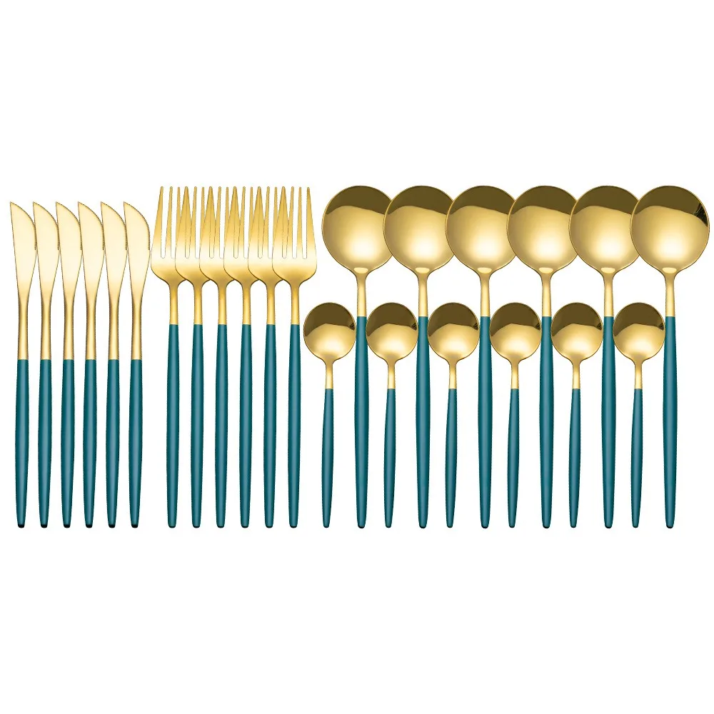 24 шт., разноцветная ложка-вилка из нержавеющей стали Rainbow с золотым ножом, домашняя посуда, безопасный подарок, инструменты столовый набор для кухни, длина 13-22 см