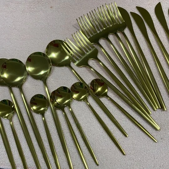 Bem embalados, todos os talheres sem defeitos. São de boa qualidade, pesados. Muito satisfeita com a compra.