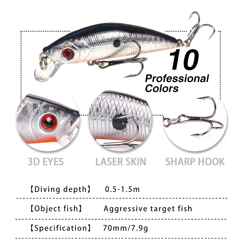 Приманка рыболовная жесткая, 7 см, 8,5 г, 1 шт., воблер с глазами г