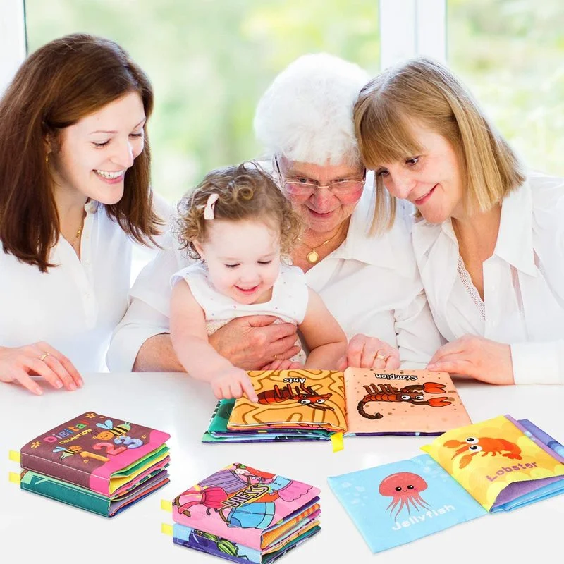 Детская Мягкая тканевая книга, образовательная игрушка раннее образование просвещение, устойчивая к разрыву, Обучающая книга с животными на английском языке