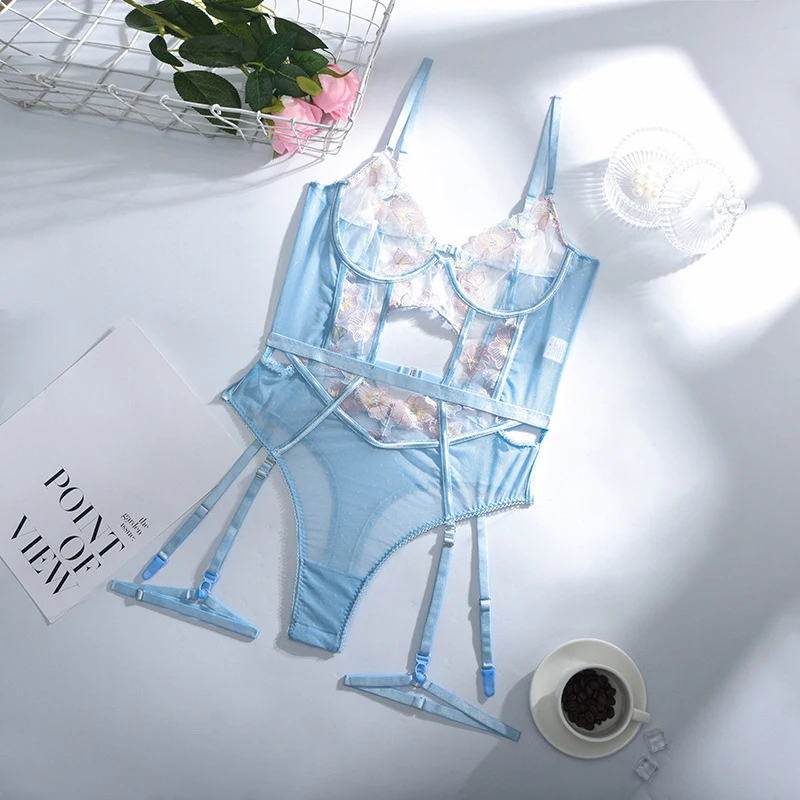 Женское нижнее белье с кружевной вышивкой и сетчатым бюстгальтером