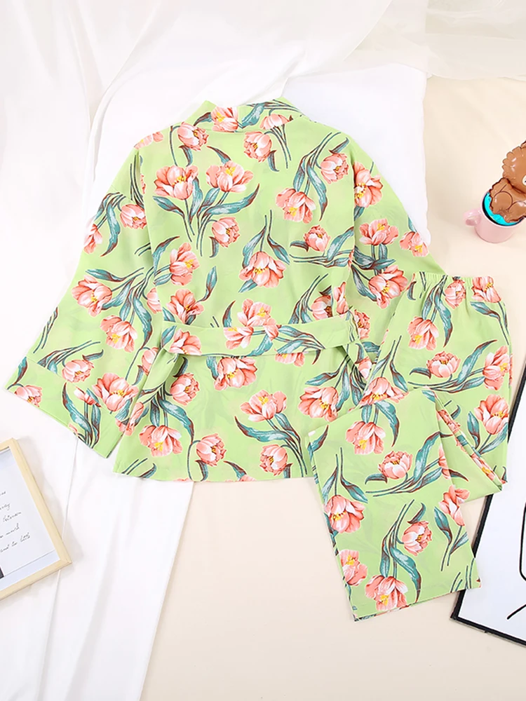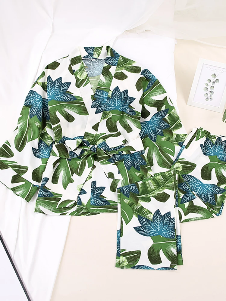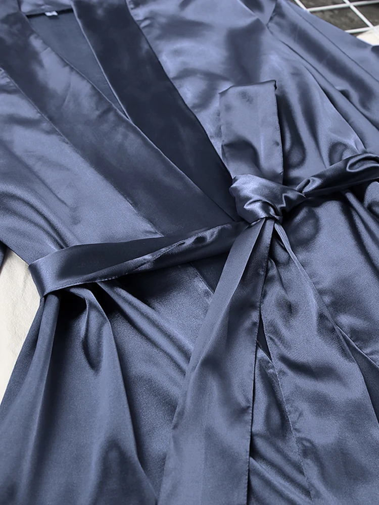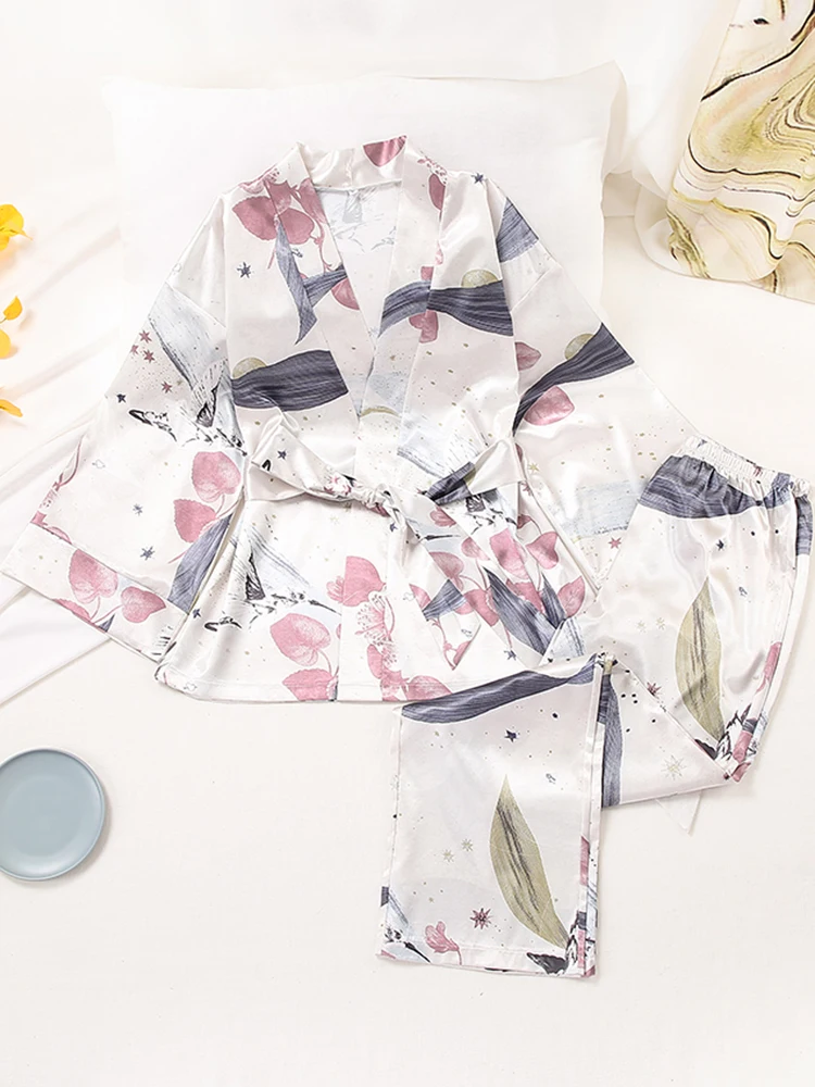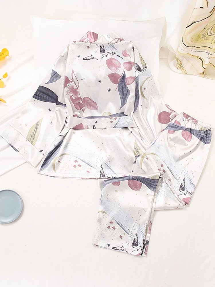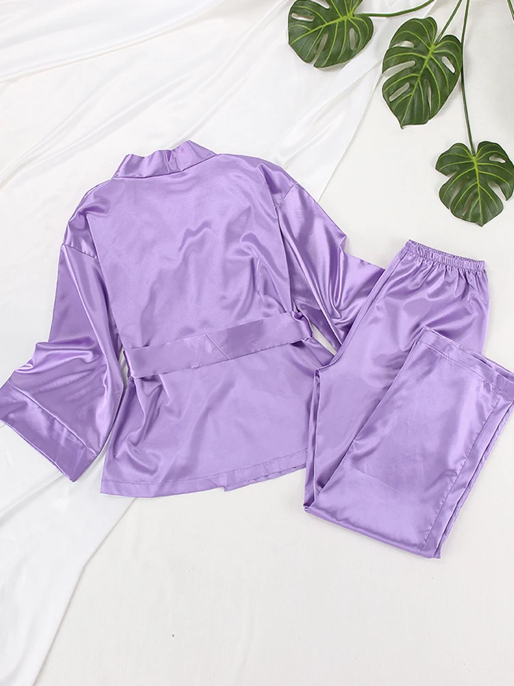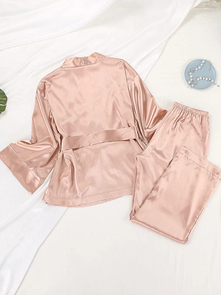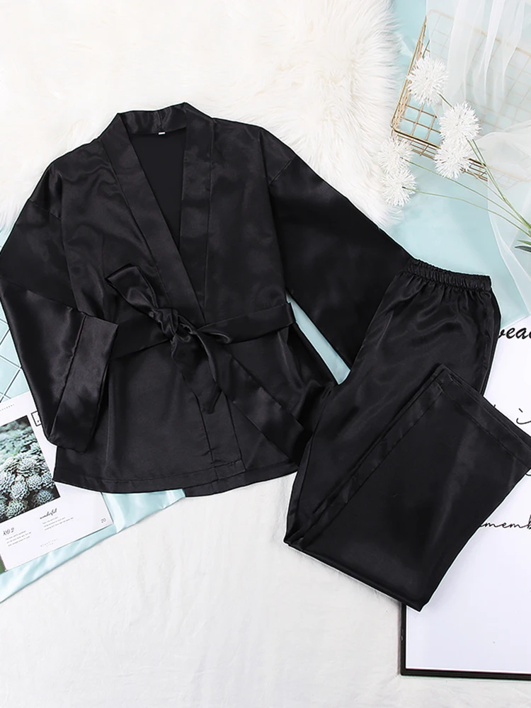 Однотонная Пижама, свободные расклешенные домашние брюки, комплект атласного халата с рукавом три четверти, женский халат, модная весенняя Пижама 2021