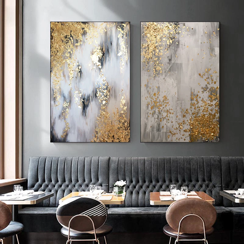 Картина большого размера на холсте, настенная живопись с золотым де...