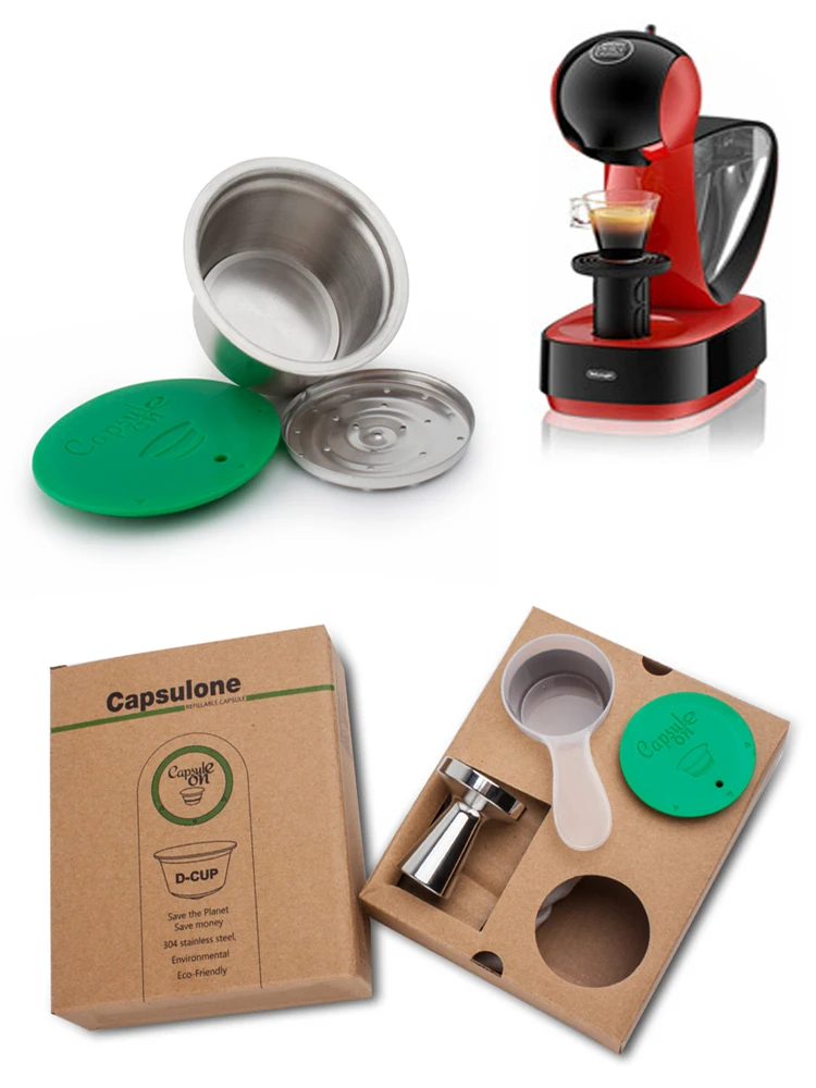 Сделайте это самостоятельно-Наслаждайтесь кофе с помощью этой многоразовой капсулы для кофе от Capsulone. Заварите ваш внутренний ароматизированный и свежий кофе с богатой кремой. Вы можете выбрать любой кофейный порошок, который вам нравится, вместо ограниченных вариантов из упакованных стручков.Экономически эффективный -- изготовлен из пищевой нержавеющей стали, наши стручки безопасны и долговечны. Стоит вам меньше $0,01/Кубок в течение многих лет жизни.Экологичность-эта капсула используется для многих лет, она не только помогает вам экономить деньги, но и экономит ресурсы, не тратя одноразовые пластиковые капсулы.Совместимость-Совместимость со всеми сериями кофемашин Dolce Gusto.Простота обслуживания-поставляется с кисточкой и порошковой ложкой, вы можете легко получить капсулу очищенную и готовую к следующему использованию.
