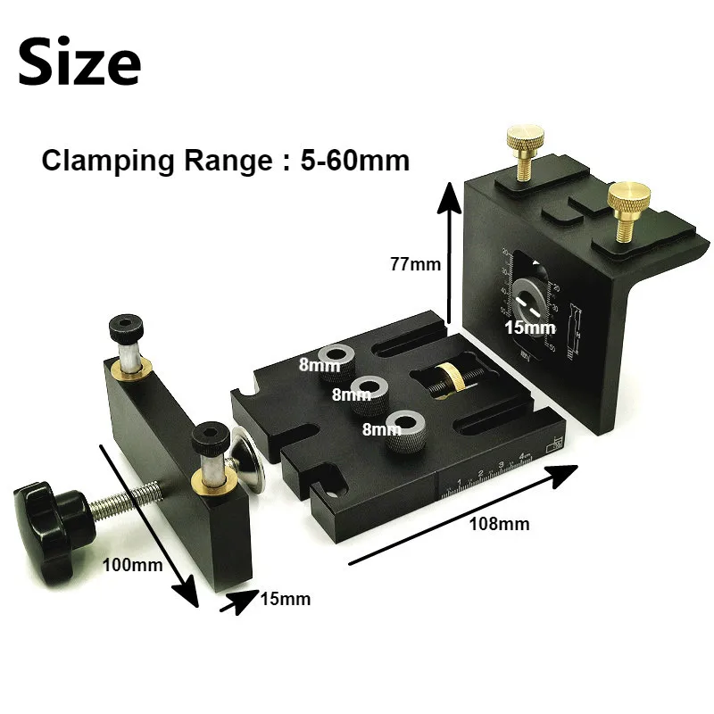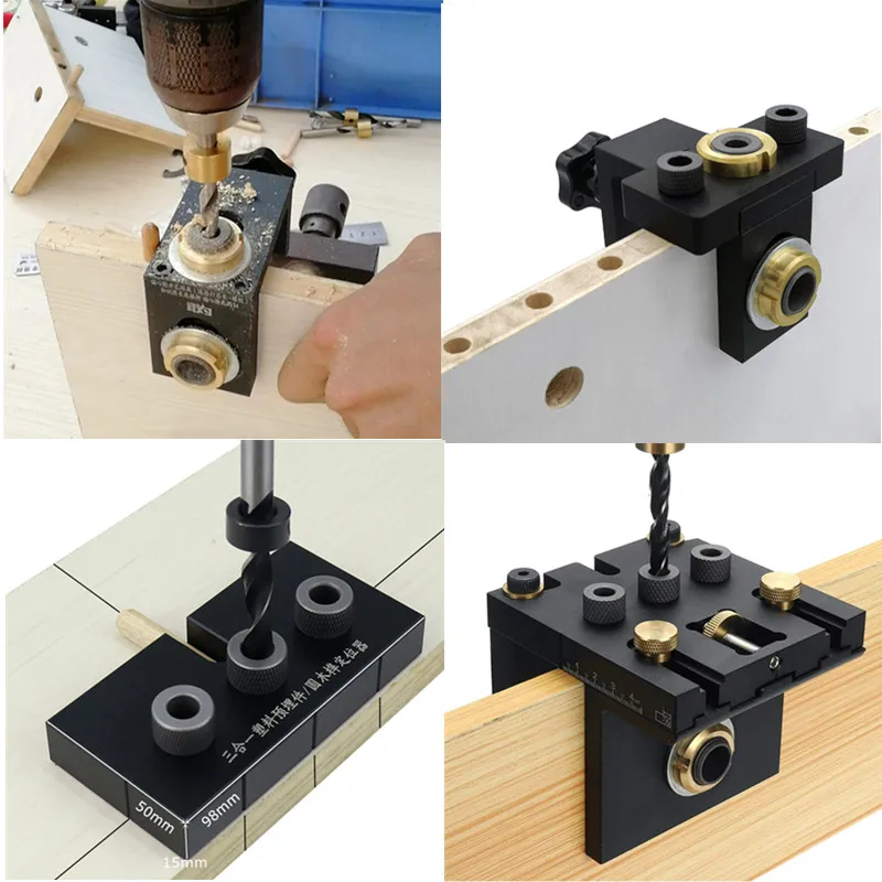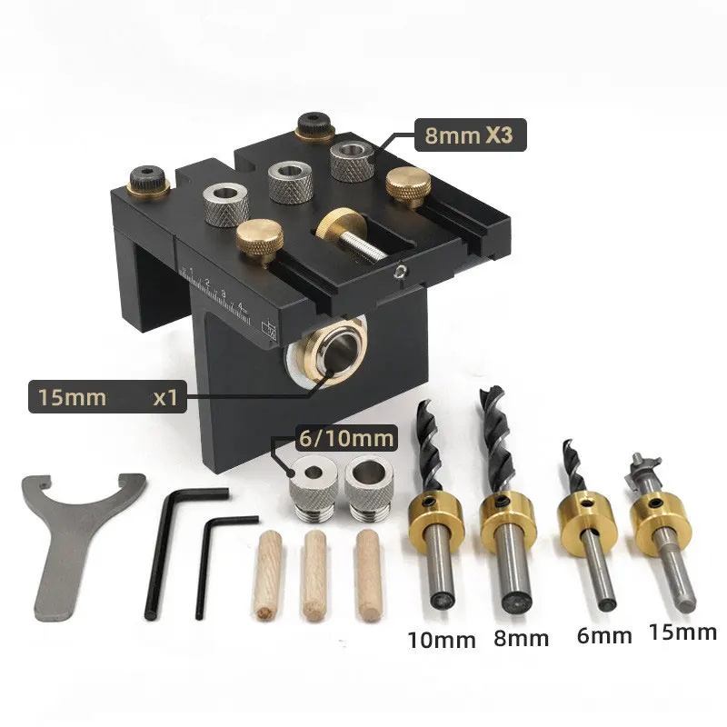 Список:Пробойник «Три в одном»Трехточечная дрель (8 мм/10 мм)Открывалка для отверстий (15 мм * 1)Ключ/внутренний шестигранный ключКруглый дюбельХарактеристика:Материал: 6061 алюминийЦвет: черныйСверлильный патрон Технические характеристики: 8/10/15 ммМасштаб: лазерная гравировкаТолщина деревянной доски: 13-50 мм